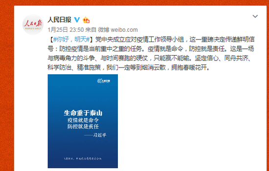 新闻关注 当前位置: 首页 >> 新闻关注 >> 正文 防控疫情是当前重中之重的任务 文章来源:人民日报 发布日期:2020-01-27 点击: 党中央成立应对疫情工作领导小组,这一重磅决定传递鲜明信号:防控疫情是当前重中之重的任务。疫情就是命令,防控就是责任。这是一场与病毒角力的斗争、与时间赛跑的硬仗,只能赢不能输。坚定信心、同舟共济、科学防治、精准施策,我们一定等到烟消云散,拥抱春暖花开。 上一篇:把疫情防控作为当前最重要的工作来抓 下一篇:疫情就是命令 与时间赛跑