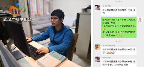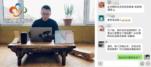 截至到3月5日,线上志愿者已连续奋战在小区业主群22天,日均回复信息近1000条,落实生活物资团购订单2000余份,发布防疫舆情200余篇,反馈给群众建议近150条,为社区建言献策近100条,沟通解决业主实际困难近100次,协助社区全力做好2000余人的生活物资保障工作。他们就像武汉战“疫”中的线上“红细胞”一样,默默地为抗疫工作实时输送“氧气”。