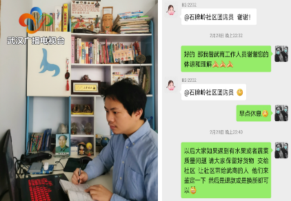 “滴滴,滴滴……”,深夜11:35分,省科技厅驻武昌区中南街石牌岭社区疫情防控工作队线上志愿者和社区工作人员还在紧张有序地忙碌着:“明天武商会出新的套餐,请大家引导好居民购买所需菜品哈”,社区书记李春华布置着第二天的工作。“李书记,5栋19楼家中两位八十多岁的老人的物资需要社区帮忙配送到家哈。”“线上志愿者还在吗?后期能不能增加一个牛奶和酸奶套餐?”“好的,我现在就跟武商工作人员反馈”,线上志愿者团队协助社区事无巨细地做着居民和商超的协调工作。